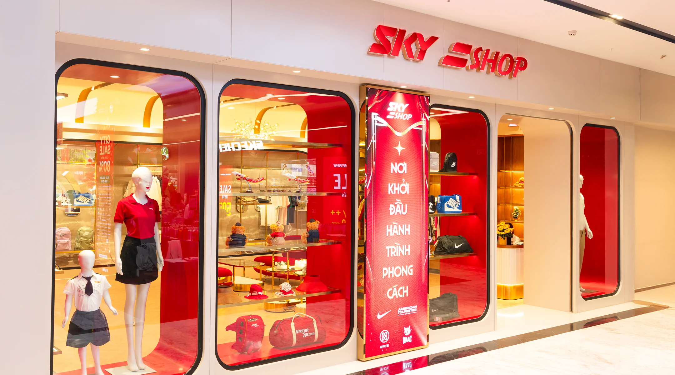 Tại Menas Mall Saigon Airport, Menas tiếp tục tạo dấu ấn với SkyShop – mô hình bán lẻ thời trang và phong cách sống theo khái niệm “onboarding shop”. Đây là điểm đến “all-in-one” cho mọi hành trình, nơi quy tụ các thương hiệu quốc tế như Nike, GEOX, American Tourister… Khách hàng có thể dễ dàng chọn trang phục, vali, phụ kiện – tất cả những gì cần thiết để bắt đầu chuyến đi một cách trọn vẹn. SkyShop là minh chứng cho khả năng sáng tạo và chiến lược của Menas trong việc tạo nên trải nghiệm mua sắm gắn liền với nhịp sống hiện đại.