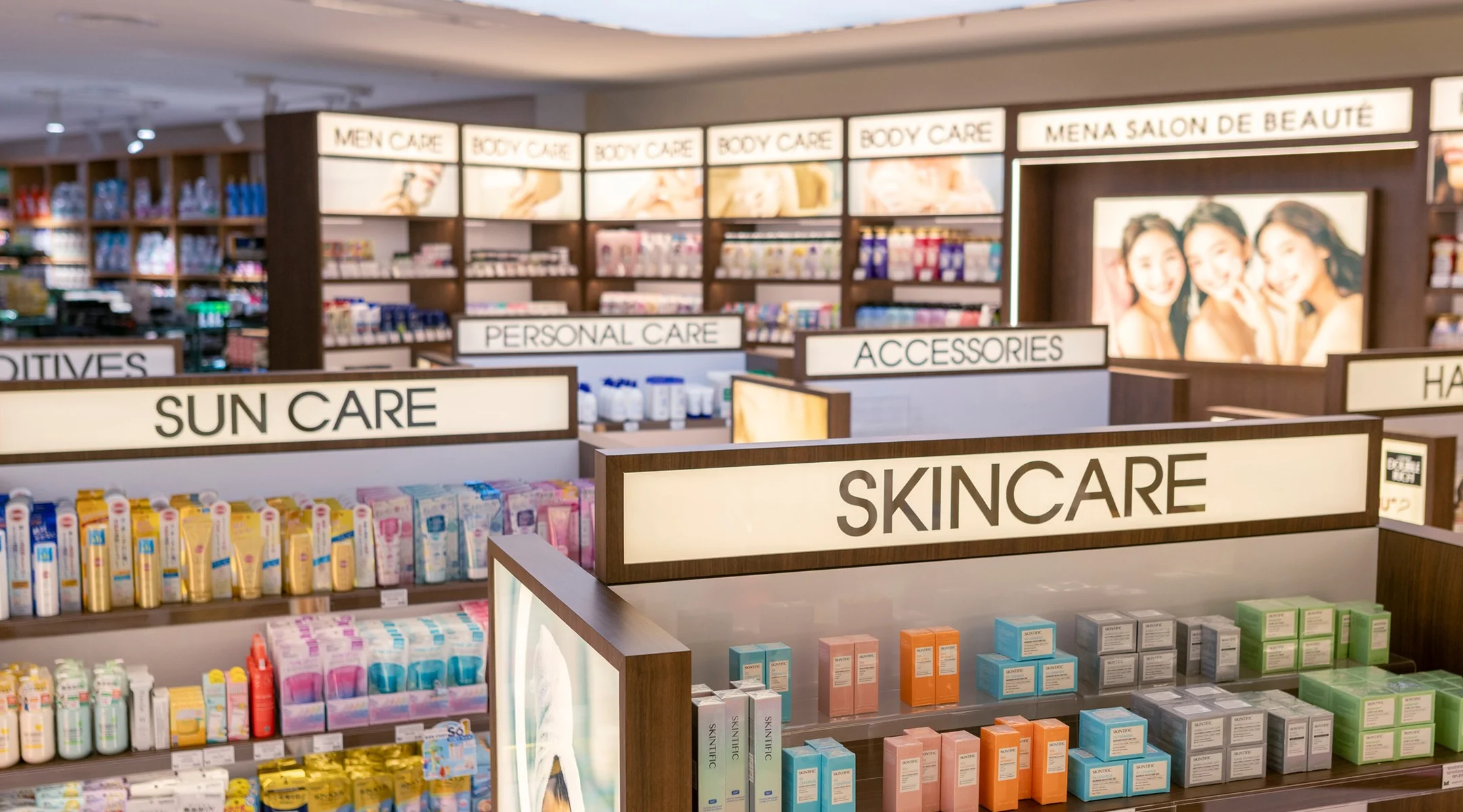 Tại Mena Cosmetics & Perfumes, khách hàng có thể khám phá hơn 300 thương hiệu và 5.000 sản phẩm làm đẹp thuộc các dòng skincare, makeup, body care và nước hoa đến từ các tên tuổi hàng đầu như Lancôme, OHUI, Su:m37º, Murad, Marc Jacobs, Coach, Burberry và nhiều thương hiệu danh tiếng khác.